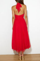 Aya | Elegantní midi šaty s vysokým límcem a odhalenými zády