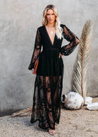 Αυτή η μακριά μαύρη φόρεμα ενσωματώνει το μποχέμ πνεύμα με τις λεπτές κεντημένες λεπτομέρειες και την ρευστή γραμμή της. Οι μακριές μανίκες προσφέρουν άνεση και ελαφρότητα, ενώ η σιλουέτα αναδεικνύεται διακριτικά. Ένα κομμάτι κομψό και ευέλικτο για όλες τις περιστάσεις σας.