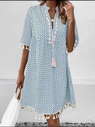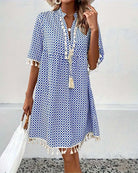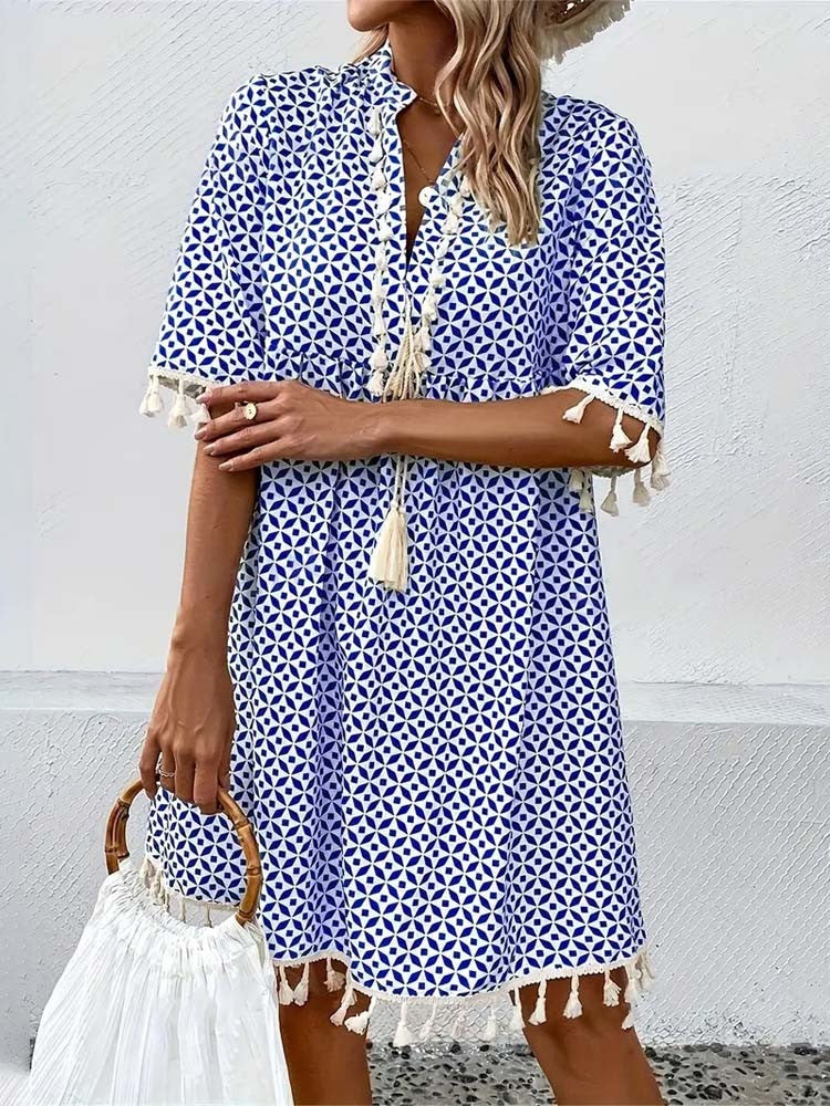 Αυτό το καλοκαιρινό φόρεμα διαθέτει μοντέρνο σχέδιο και άνετη γραμμή. Τα κοντά μανίκια και η ελαφρότητά του το καθιστούν ιδανική επιλογή για ηλιόλουστες μέρες. Τέλειο για την πόλη, τις διακοπές ή μια έξοδο με φίλους.