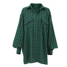 החולצה האוברסייז הזו מציגה דפוס משובץ נועז עם כתפיים נפולות למראה מודרני. השרוולים הנפוחים עם הרצועות מוסיפים נופך נשי. עשויה מתערובת של בדים נעימים, היא אידיאלית לכל העונות.