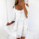 このショートボヘミアンドレスは、流れるようなシルエットとエレガントに強調された肩のデザインで魅了します。繊細な仕上げがロマンチックな雰囲気を加え、夏の日や海辺の散歩に最適です。