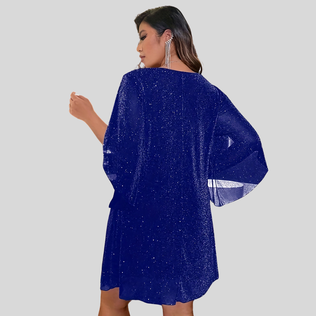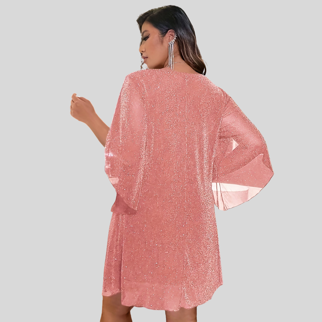 この短いキラキラドレスは、あなたの夜にぴったりです。Vネックがあなたのシルエットを引き立てます。さまざまな色とサイズでご利用いただけます。