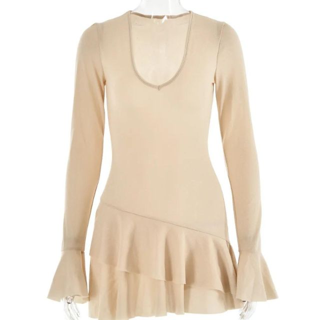 このきらめくミニドレスは、あなたの夜に輝くのに最適です。フレアスリーブが洗練された印象を与えます。フラatteringなカットがあなたのシルエットを引き立てます。