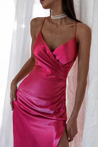 このミディ丈のスリットドレスは、流れるようなシルエットとエレガントに体を引き立てる細いストラップで魅了します。Vネックのデザインは上半身を引き立て、サイドスリットが軽やかさと女性らしさを加えます。晴れた日や夏の夜に最適で、シンプルに快適さとスタイルを兼ね備えています。