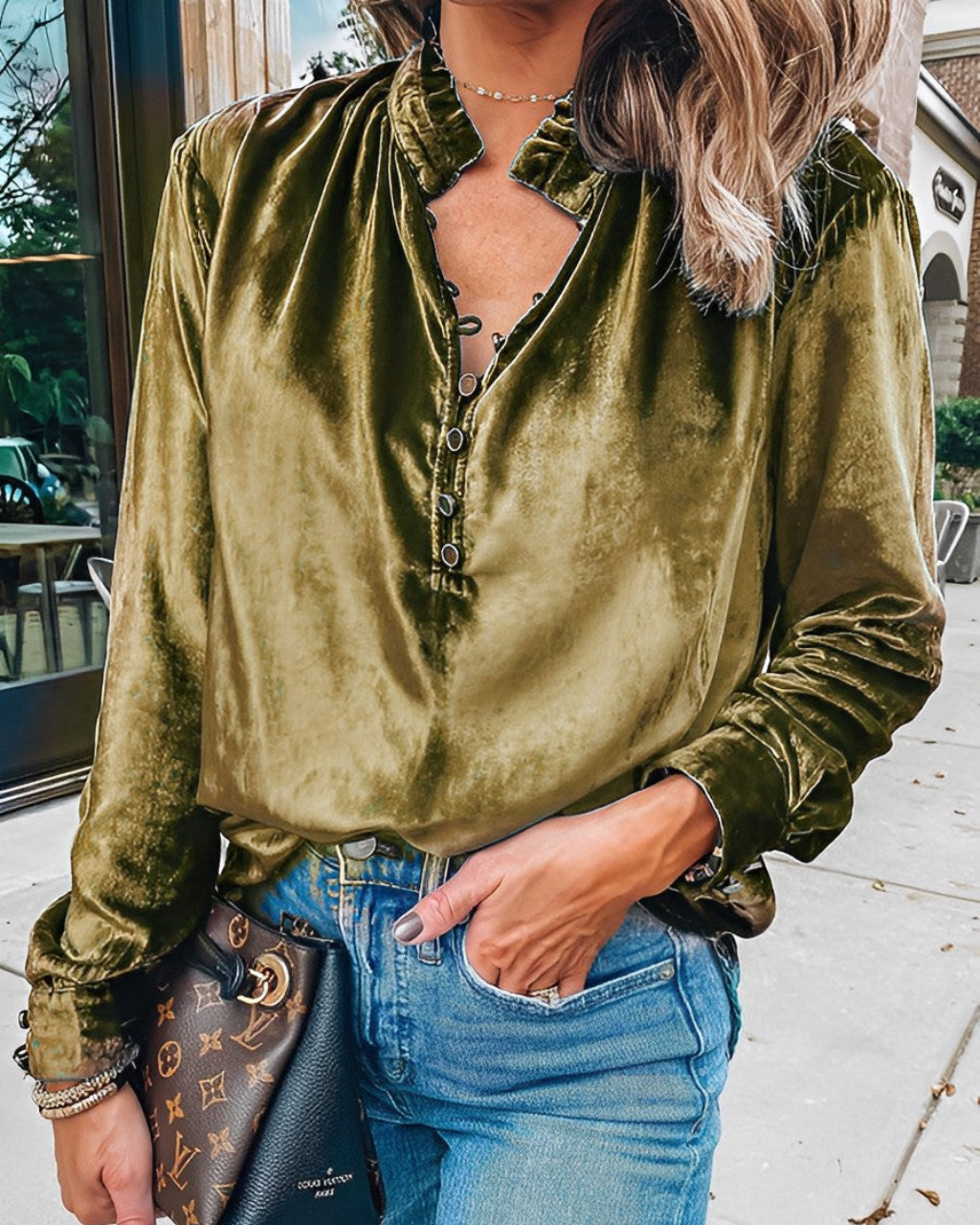 ヴィヴィアン | エレガントな女性用ブラウス – フリルカラーとおしゃれなボタン