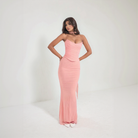 Denne to-delte modellen kombinerer en stroppeløs topp med korsettform og en lang, tilpasset skjørt for å fremheve silhuetten. Hver detalj fremhever en elegant og moderne stil. Et perfekt antrekk for dine mest raffinerte anledninger.
