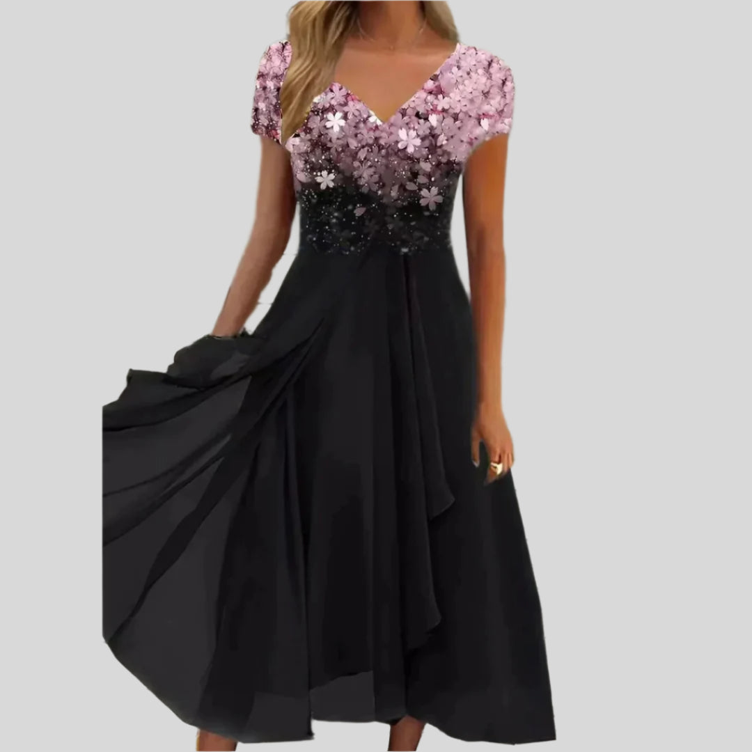 Viviane | Vestido Midi Evasê com Estampas Florais